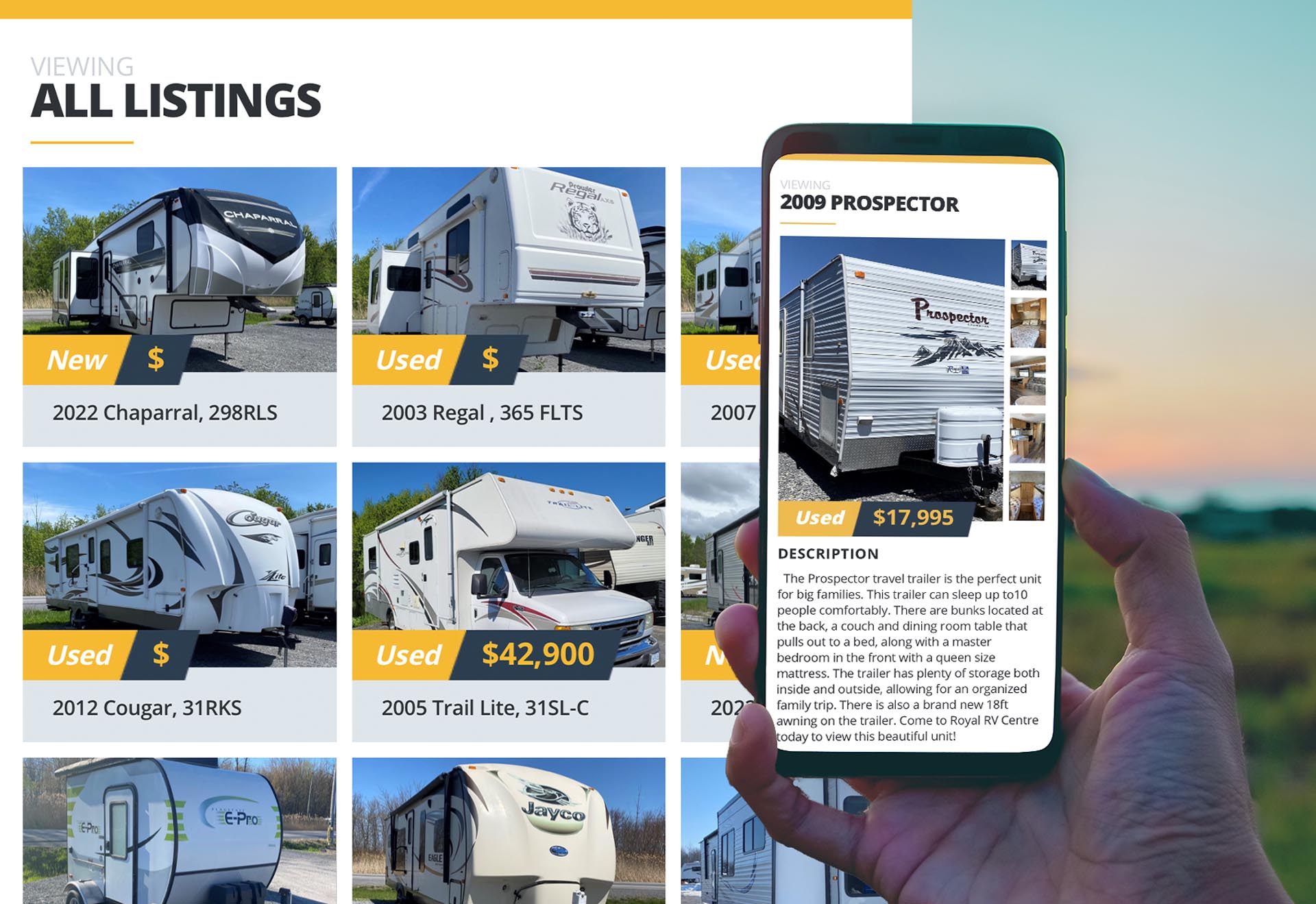 Who doesn’t love the idea of escaping for a week with an RV or trailer? We captured this feeling into a design that was practical and attractive, to match with their brand. We built a custom product listing catalogue that they can update on their end making it a strong promotional tool for their business.